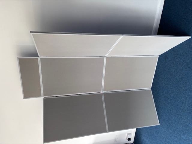 We have a limited stock of great value ex-demo and ex-hire 6 panel folding display kits with 900 x 600mm double display boards. All kits include a central header panel and carry bag. There are small signs of use but overall the kits are in very good condition.