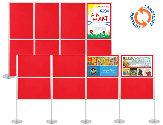 This great value package costs £769.00 and includes 8 portable display boards measuring 1000 x 700mm, 5 x bottom poles at 600mm high, 5 x top poles at 1400mm high, 5 panel washers and 5 x 300mm non-slip circular bases. The washers are positioned in between the top and bottom poles when the panels are being used landscape to prevent panel slippage.