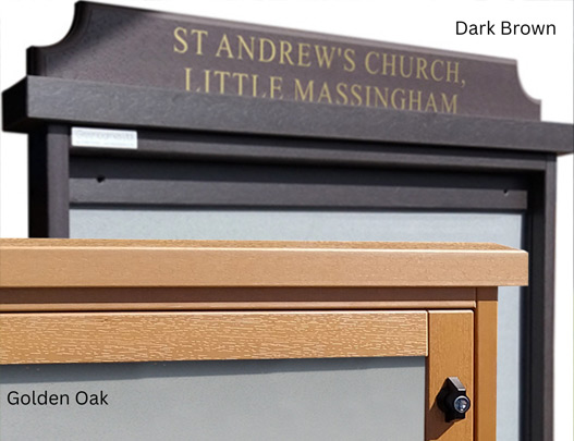 We offer personalision of the main header board which may include your organisation's name or other key information. Choose from permanent engraved lettering which is etched into the panel or machine cut vinyl lettering which can be replaced at a later date. For either option you can choose from white or gold in Times Roman or Arial font with a stylish scalloped edge. Please contact our helpful sales team today for more help & costs.